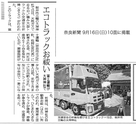 ●2012.09.16 新車の天然ガストラックご祈祷を奈良新聞に掲載して頂きました